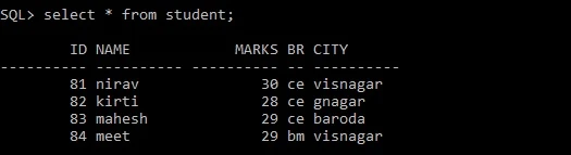 Note:After performing any operation performed on table changes also reflected in view made from that table.